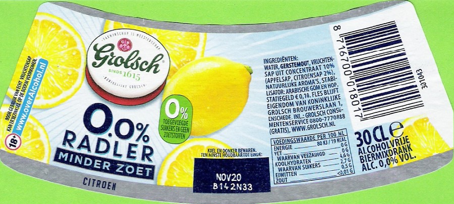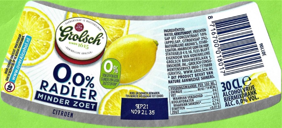 Grolsch Radler 0.o% Minder Zoet